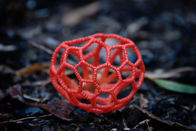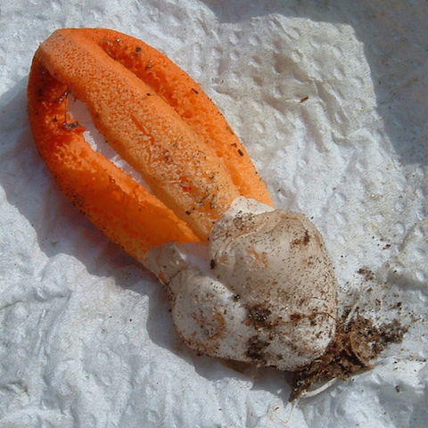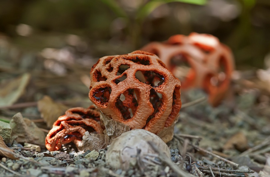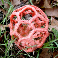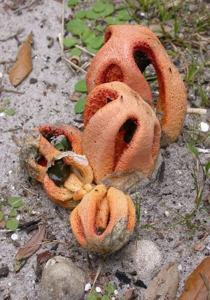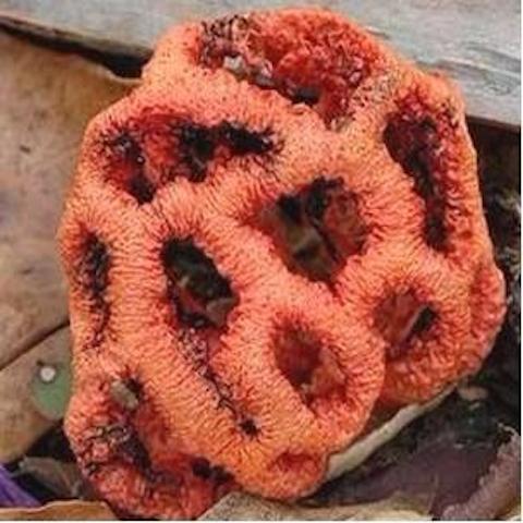 Le champignon Lanterne. Clathre rouge est aussi appelé coeur de sorcière.