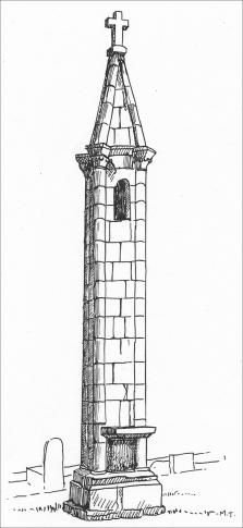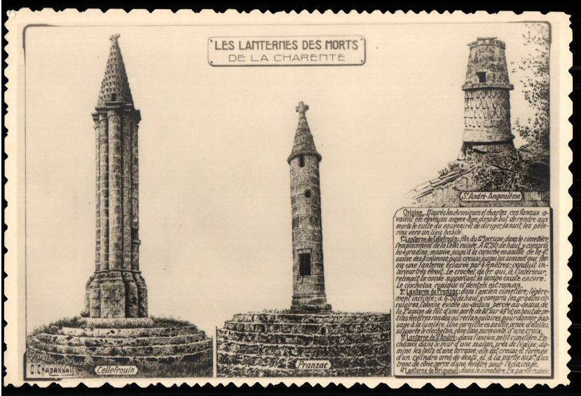 Lanterne des morts futs de colonne en pierre de plusieurs metres surmontée d’un Fanal etait placée au centre du cimetière, d’époque romane et reste encore de nos jours un mystere.