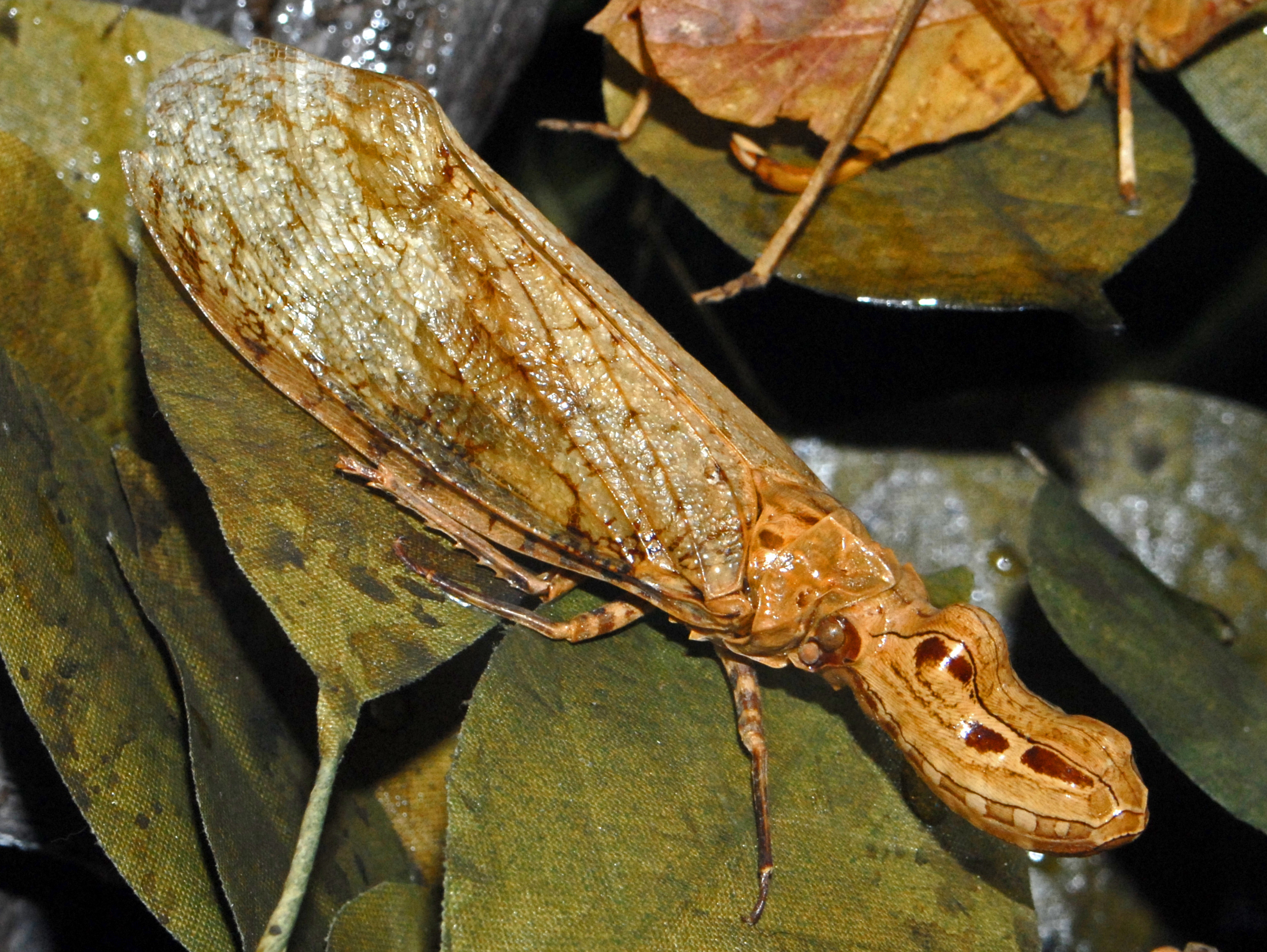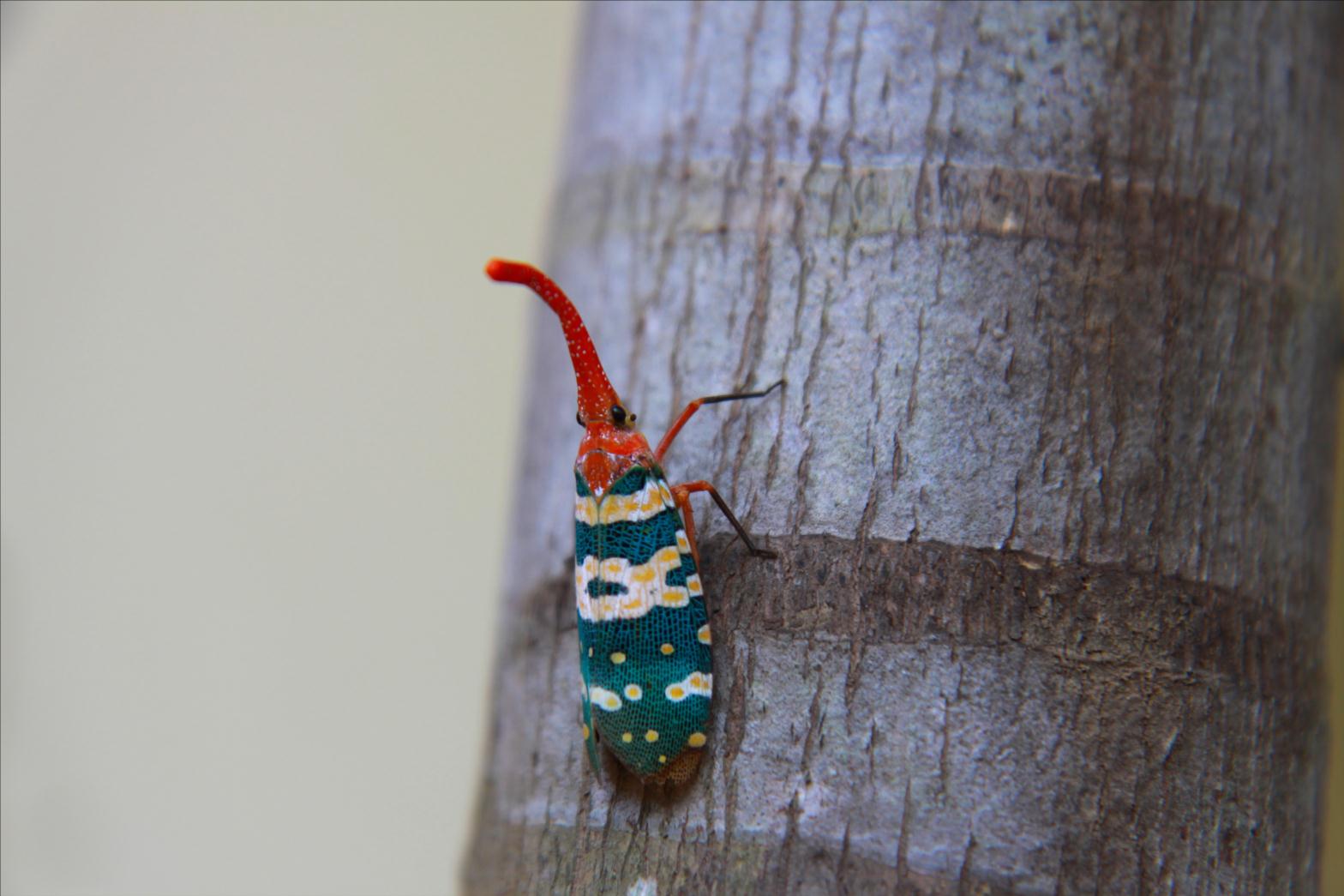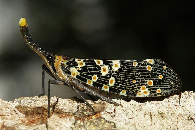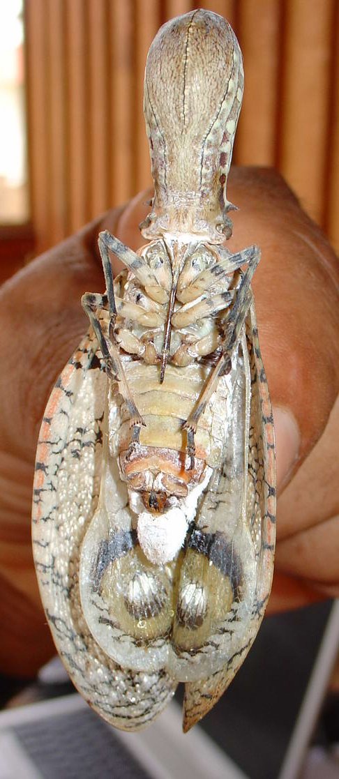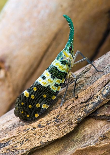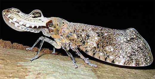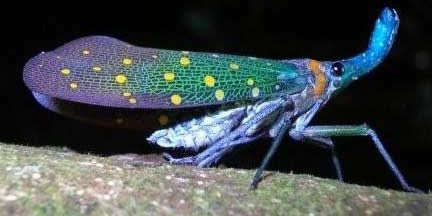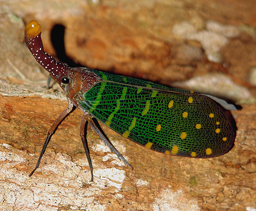 Les portes lanternes appelés Fulgores sont les cousins des cigales, aussi appelés fulgore cacahouette ou aligator qui se caractérisent par une protubérance frontale hypertrophiée.