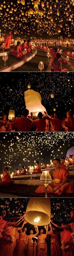 Les lanternes Thailandaises souvent appelées aussi Lanternes celestes, Lampions volants ou mongolfières lumineuses, leur ascension peut atteindre 200m selon la météo et peut également parcourir plusieurs dizaines de kilomètres. Cette fète a lieu tous les ans, le 15 ème jours du 1er mois Lunaire pour cloturer le nouvel-an chinois.